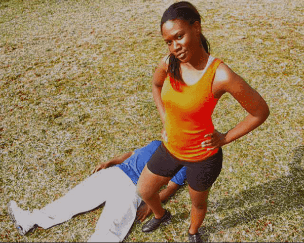She dispatches her enemy with relish.
